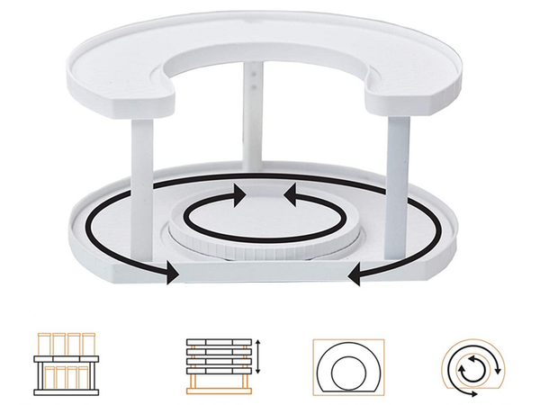 Organizer obraca się dookoła własnej osi, dodatkowo półkę w środku stojaka również można dowolnie obracać